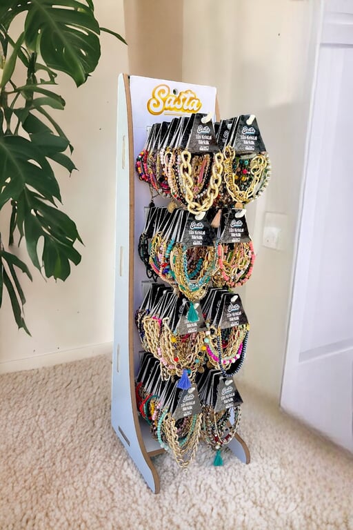 Sasta Kristal Bileklik Standı, ürünlerinizi şık bir şekilde sergilemek ve satışlarınızı artırmak için etkili bir çözümdür. Göz alıcı detaylar ve çoklu içerik avantajıyla stoklarınızda mutlaka yer almalı!