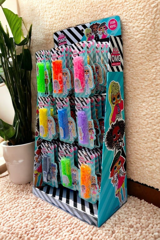 LOL OMG Perma Toka Standı (72 Adet), popüler LOL OMG temasıyla tasarlanmış, kız çocukları ve gençlerin ilgisini çeken eğlenceli perma tokalardan oluşur. Renkli desenler ve sevimli detaylarla süslenmiş bu tokalar, saçta şık bir görünüm oluştururken pratik kullanım sunar.