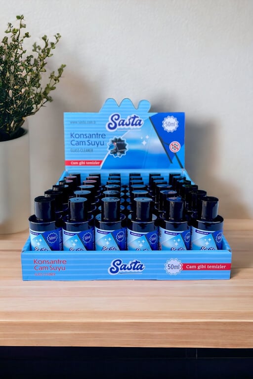 SASTA Oto Cam Suyu Konsantre 50 ml 36’lı, araç camları için özel olarak geliştirilmiş güçlü temizlik sağlayan konsantre sıvıdır. 50 ml’lik her şişe, su ile karıştırılarak 5 litreye kadar cam suyu elde edilmesini sağlar. Bu da ürünü hem ekonomik hem de kullanışlı hale getirir.
