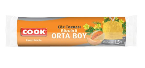 Cook Büzgülü Çöp Torbası Kavun Kokulu Orta Boy 55x60cm 15'li