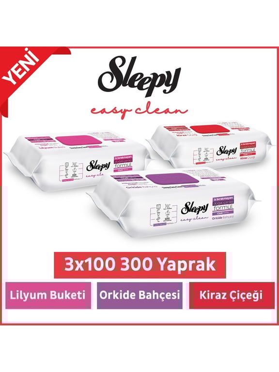Sleepy Easy Clean Lilyum Orkide Kiraz Çiçeği Yüzey Temizlik Havlusu&Mendili 3x100 (300 YAPRAK)