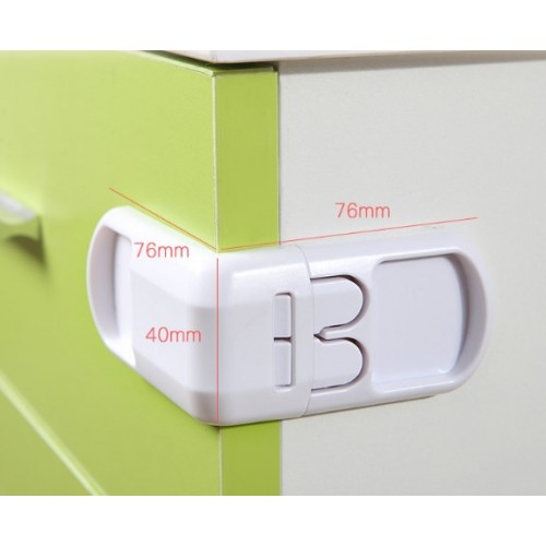 Çocukların meraklı parmaklarını koruyan, tek elle açılan, buzdolabı, dolap ve kapılar için uygun 76x76x40 mm boyutlarında 2’li beyaz çocuk koruma köşe kilidi; kolay montajlı ve güvenlidir.