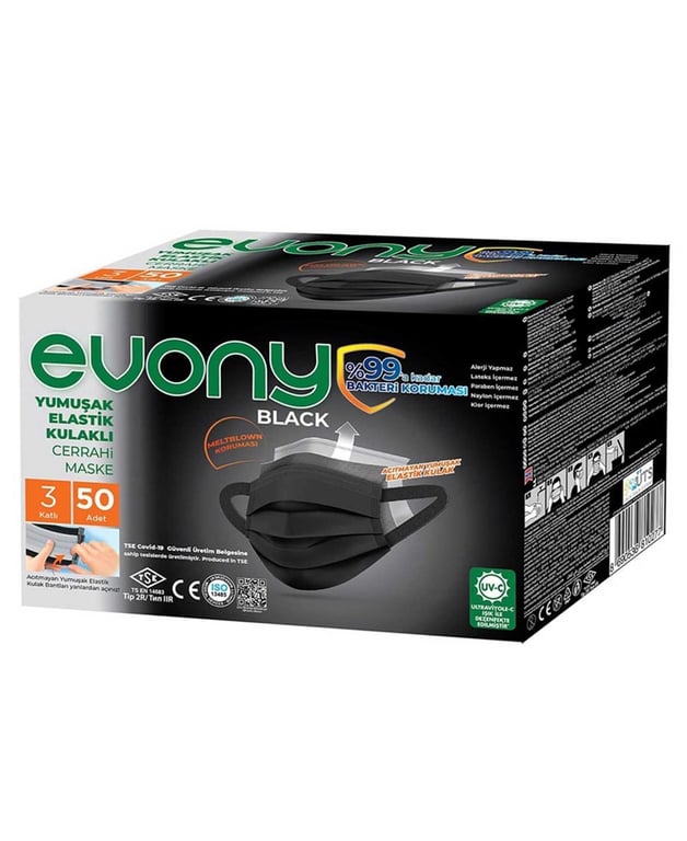 Evony 3 Katlı Telli Cerrahi Maske 50'li Siyah 8690536810277