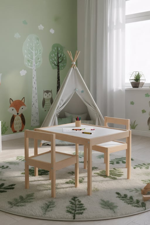 • Montessori Eğitimine Uygun Tasarım: Çocukların kendi başına erişebileceği yükseklikte masa ve sandalyeler.;