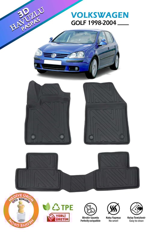 Havuzlu 3d Siyah Paspas Takımı, VOLKSWAGEN-GOLF-1998-2004  3d Havuzlu Paspas, HediyeAraç Kokusu;