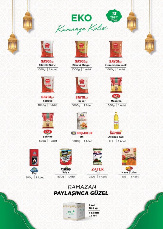 Konya Toptan Ramazan Eko 13 Parça Ürün Kumanya Paketi - Eko Ramazan Kolisi
