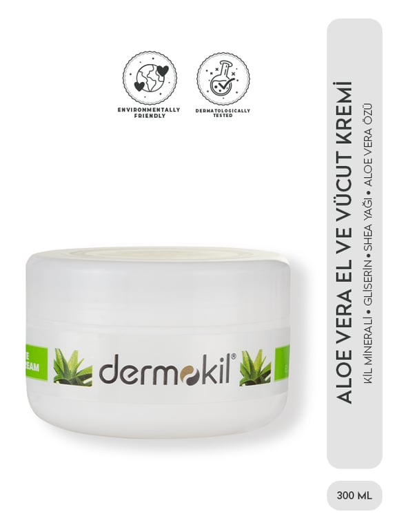 Dermokil El, Yüz ve Vücut Bakım Kremi 300 Ml Doğal Aloe Vera Özü & Kil Yenileyici 8697916005414
