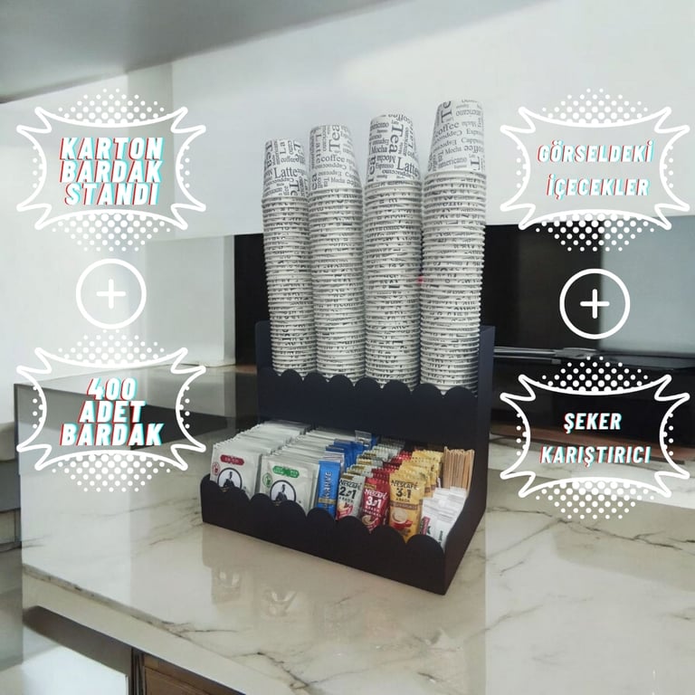 Alis Cup Karton Bardak ve İkram Standı–8 Oz Uyumlu/Kahve & Şeker & Karıştırıcı Seti/Karton Bardaklık AlisCupKartonBardakveAmbalajfe3197bb-1bf