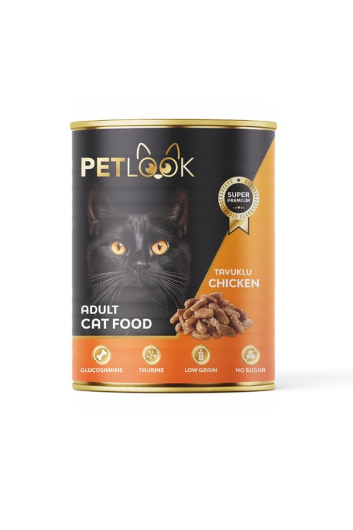 Petlook Konserve Yetişkin Kedi Maması Tavuk Etli Parça Etli 415 GR Yaş Mama Düşük Tahıllı