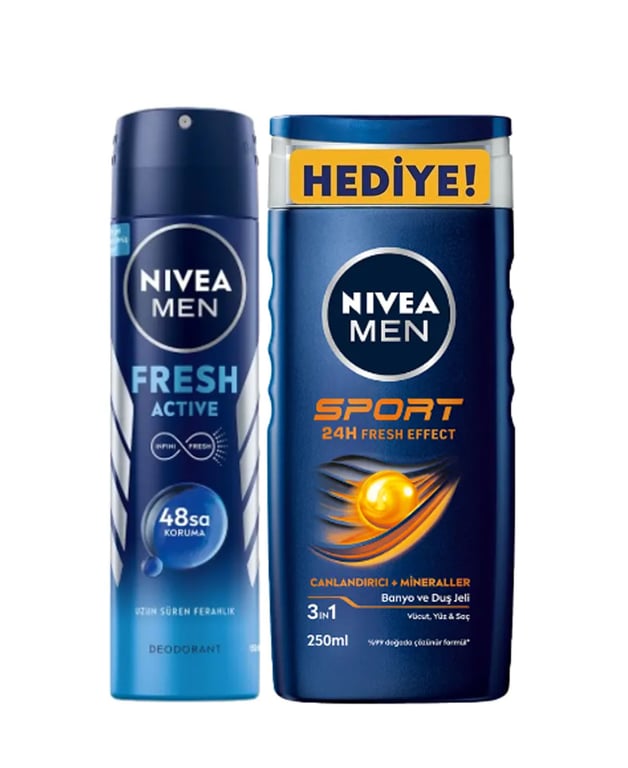 Nivea Deodorant Erkek Fresh Active 150 ml, gün boyu süren ferahlık ve koruma sunarken, Nivea Duş Jeli Sport 250 ml, cildinizi derinlemesine temizleyip canlandırır. Uygun fiyatlı ve toptan alım imkanları ile her zaman taze kalın!