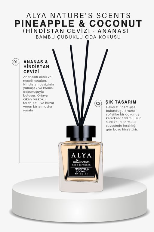 Alya Nature's Scents Pineapple & Coconut Bambu Çubuklu Oda Kokusu- Ananas & Hindistan Cevizi Kokusu 8696601070348
