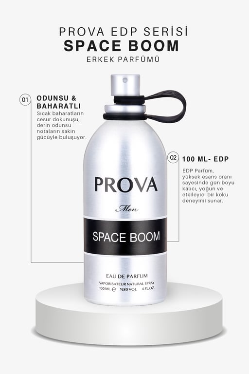 Prova Space EDP Erkek Parfümü, kalıcı ve çekici kokusuyla yoğun baharatların karışımından ilham alır; Bu parfüm, daha güçlü, cesur ve maskülen hissetmek isteyen erkekler için tasarlanmıştır; Tepe notalarında küçük hindistan cevizi, tarçın ve greyfurt bulunur; Bu notalar parfüme enerjik bir başlangıç sağlar ve ferah bir etki yaratır; Orta notalarda pembe biber, lavanta ve tütün bulunur; Bu notalar parfüme baharatlı ve odunsu bir karakter katar, aynı zamanda sıcak ve çekici bir his uyandırır; Baz notalarda vanilya, deri ve amber bulunur; Bu notalar parfüme derinlik ve kalıcılık sağlar, aynı zamanda maskülen ve çekici bir izlenim bırakır; Prova Space , güçlü ve etkileyici bir koku arayan erkekler için ideal bir seçenektir; Hem günlük kullanıma uygun olabilir hem de özel etkinliklerde veya gece davetlerinde kullanılabilir; Bu parfüm, kendinizi daha özgüvenli ve maskülen hissetmenizi sağlar, çevrenizde iz bırakmanıza yardımcı olur; Bu şık metal şişe, kendi kokunuzu keşfetmenizi sağlar ve tüm cilt tipleri için uygun bir seçenektir; Temiz tene ve kıyafete istenilen sıklıkta uygulanabilir; Duştan sonra kullanıldığında daha fazla kalıcılık sağlar; Günlük kullanıma uygun olan bu parfüm, bilek, dirsek içi, kulak arkası, boyun gibi sıcak noktalara uygulanabilir; Uygulama sırasında göze veya tahriş olmuş deriye temas etmemeye özen gösterilmelidir; Yaklaşık 15; 20 cm uzaktan püskürtülerek kullanılmalıdır; Bu parfüm, size şıklık ve etkileyici bir koku deneyimi sunmak için tasarlandı; Kendinizi güzelliğin ve şıklığın içinde hissetmek için bu parfümü tercih edebilirsiniz; Deneyimleyeceğiniz her an, kokunun kalıcılığıyla baş döndürücü bir etki yaratıyor; Kalıcılığıyla öne çıkan bu parfüm seti, size unutulmaz bir deneyim sunuyor; Her sıkışınızda, kokunun büyüsüyle çevrenizde iz bırakmaya devam edeceksiniz; EDP parfümler, en yüksek esans yoğunluğuna sahip olan kokulardır; Bu güçlü ve etkileyici parfümler, kısa sürede büyüleyici bir etki yaratır;
