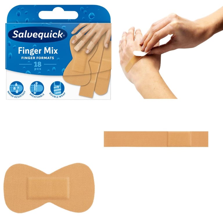 Finger Mix, parmak çevresine tam oturması için özel olarak tasarlanmış, suya ve kire dayanıklı parmak sıvalarının karışımını içerir. Parmaklardaki küçük yaralar için mükemmel günlük sıvalardır, esnektir, nefes alır ve iyi yapışır. Paket içerisinde parmak ucu yara bandı (parmak ucuna oturan kelebek yara bandı), parmakları iki kez sarabilen ekstra uzun çift sargılı yara bandı ve normal yara bandı bulunmaktadır. Paket içerisinde toplam 18 adet flaster bulunmaktadır.