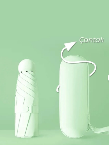 Turna Kılıflı Şemsiye - Mini Şemsiye - Kapsül Şemsiye - Seyahat Şemsiye YEŞİL 6934504010476