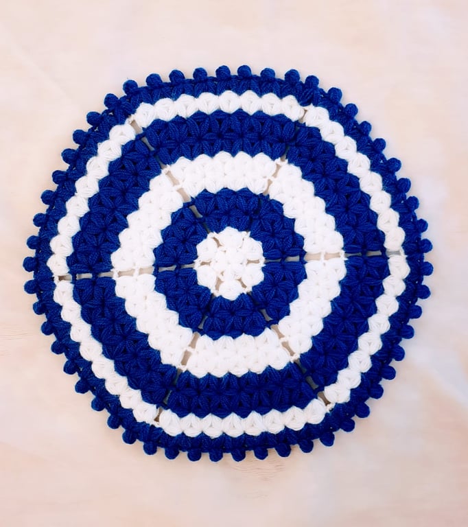 HERŞEY FIRSAT Banyo Lifi Yün El Örmesi Ceyizlik Altıgen 1 Adet - Mavi