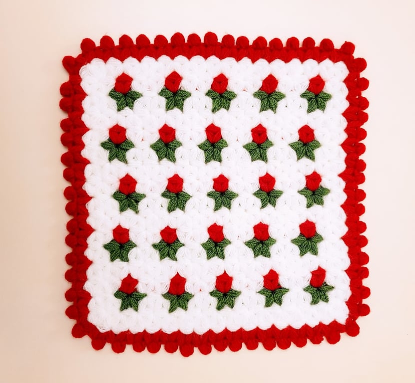 HERŞEY FIRSAT Banyo Lifi Yün El Örmesi Ceyizlik Kare 1 Adet - KIRMIZI