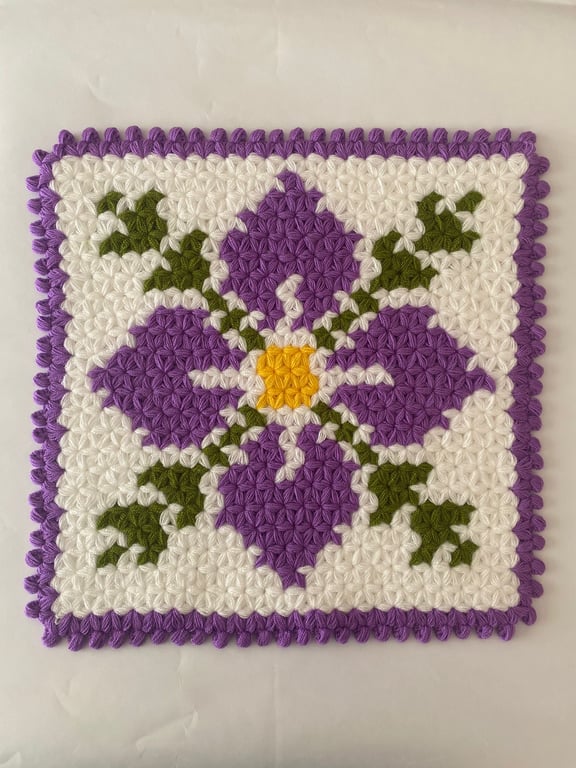 HERŞEY FIRSAT Banyo Lifi Yün El Örmesi Ceyizlik Kare  Çiçek Desenli-Eflatun