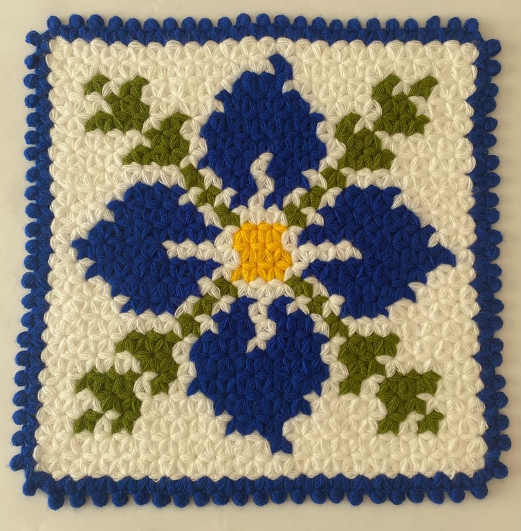 HERŞEY FIRSAT Banyo Lifi Yün El Örmesi Çeyizlik Kare Çiçek Desenli Mavi