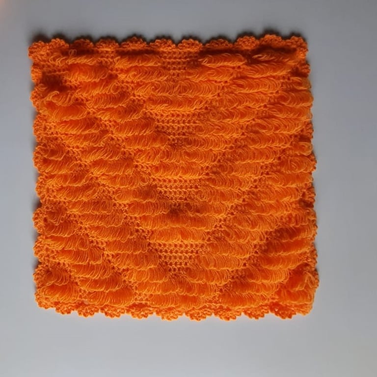 HERŞEY FIRSAT Banyo Lifi Yün El Örmesi Çeyizlik Kare Düz Desenli-Turuncu