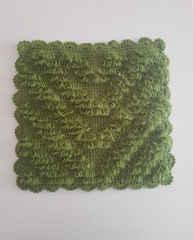 HERŞEY FIRSAT Banyo Lifi Yün El Örmesi Çeyizlik Kare Düz Desenli-Yeşil