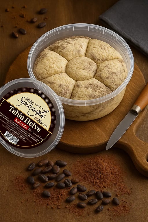 Sepetçioğlu Kakaolu Kürek Tahin Helva , yüksek tahin oranı,kakao ve kaliteli hammadde seçimi ile öne çıkan bir lezzet.