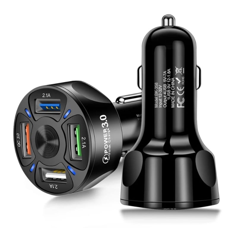 Oto 4 Lü Usb Qualcomm Quick Qc 3.0 7a Hızlı Araç Şarj Aleti Cihazı - Siyah