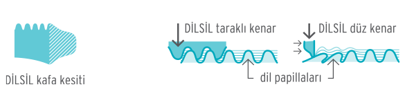 Taraklı bıçak özelliği sayesinde dil papillalarına yerleşen bakteri plağını ovalayarak yerinden oynatır.