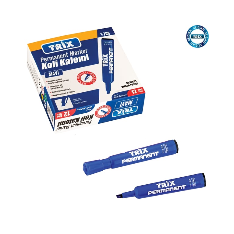 Trix Koli Kalemi Kesik Uç Permanent Marker Mavi 8698845620464