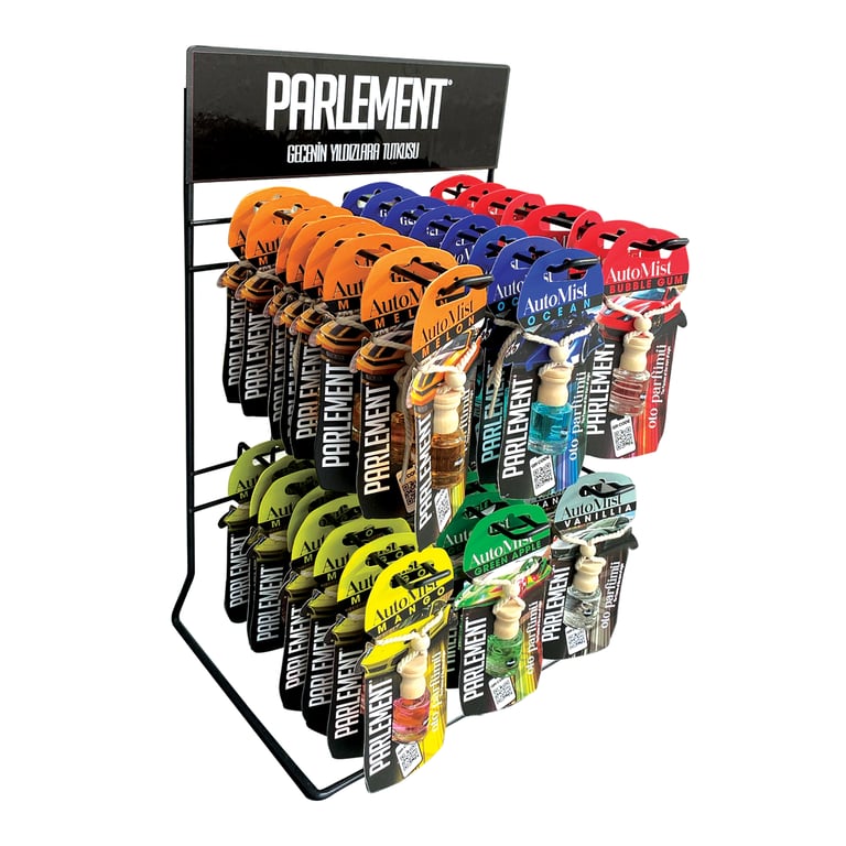 Parlement Karma Oto Parfümü Cam Şişe 8 ml, ocean, green apple, mango, vanilla, melon ve bubble gum gibi etkileyici koku seçenekleriyle aracınıza ferahlık ve hoş bir atmosfer kazandırır. Uzun süre kalıcı ve dengeli kokusuyla sürüş deneyiminizi daha keyifli hale getirir.