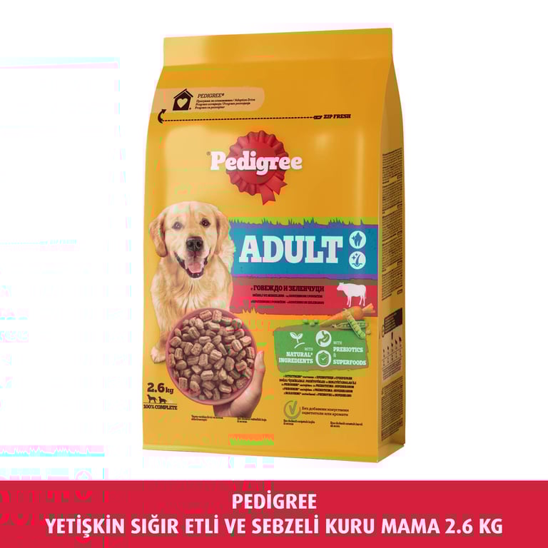 • Ürün Adı: Pedigree Yetişkin Sığır Etli ve Sebzeli Kuru Mama 2.6 KG