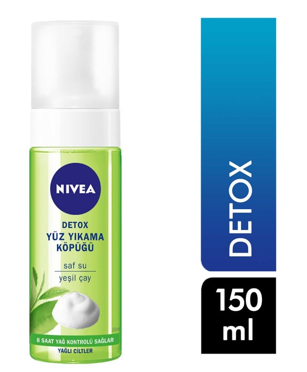 Nivea Detox Yüz Yıkama Köpüğü 8 saate kadar etkisini sürdürerek yüzünüzü gün boyu korur.