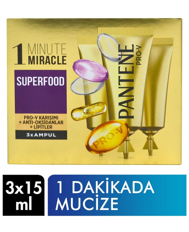 Pantene Ampul 1 Dakikada Mucize Superfood 3x15 ml