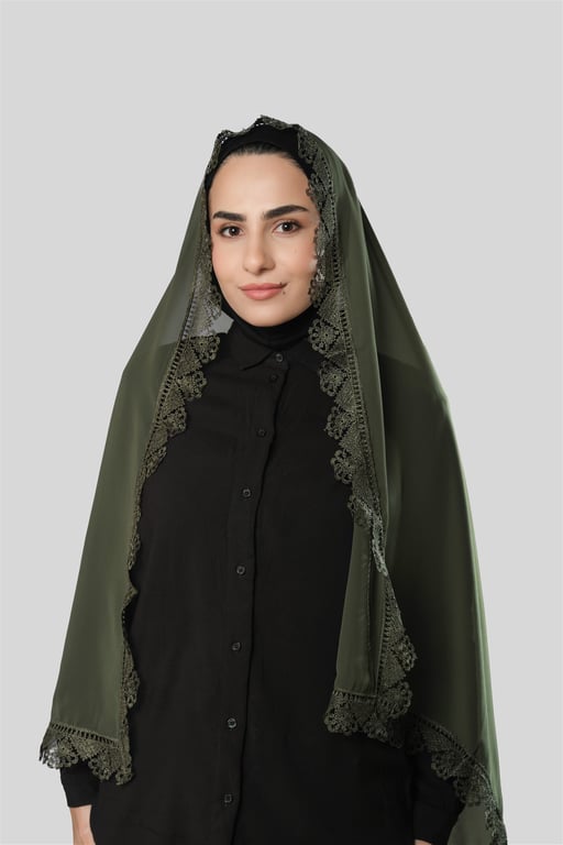 Hürrem Bone Haki Namaz Başörtüsü Şal Şifon Güpürlü 202106_09 20230020210609