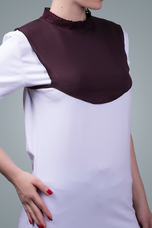 Hürrem Bone Kahverengi Tesettür Boyunluk Viskon Kumaş Yaka Dantelli 1004_14 HB0021100414