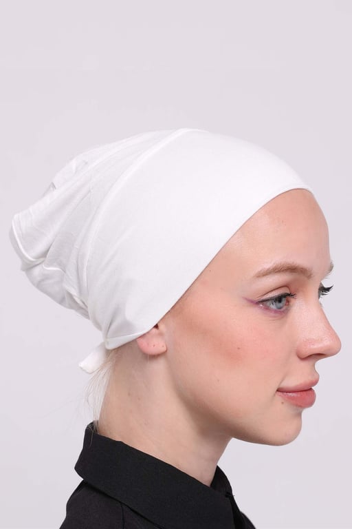 Hürrem Bone Krem Arkadan Bağlamalı Tesettür Bone Viskon Dikişsiz Geçmeli Likralı İç Bone 3010_40 202300301040