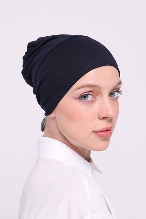 Hürrem Bone Lacivert Arkadan Bağlamalı Tesettür Bone Viskon Dikişsiz Geçmeli Likralı İç Bone 3010_02 202300301002