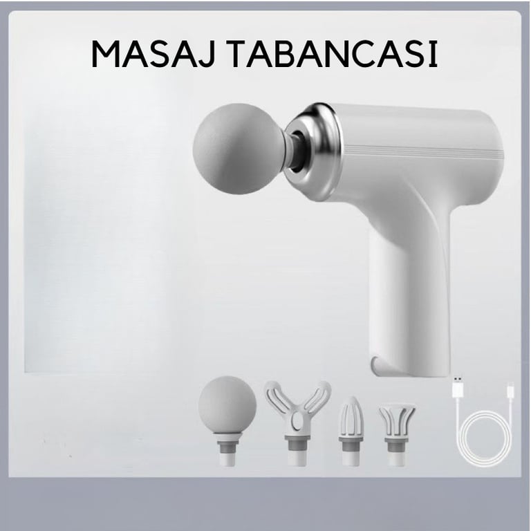 Masaj Tabancası Sporcu Masaj Aleti 6mm 4 Farklı Başlık Şarjlı Profesyonel Masaj Aleti TP-1028 Beyaz 8680534103617