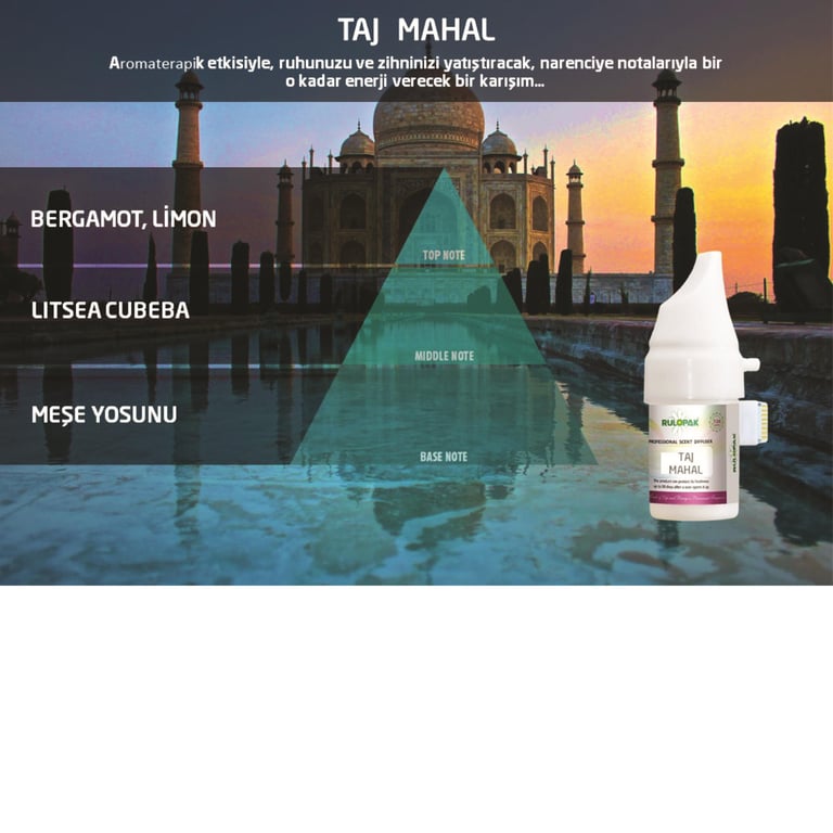 Yerleştirildiği alana ferahlatıcı koku yayan koku kartuşu, aromasıyla herkesin modunu yükseltir. Ferahlatıcı etkisi sayesinde kullanıldığı alanın havasını tazeler. Kötü kokuları yok etme etkisi sayesinde çalışanların modunu yükselten Rulopak Koku Kartuşu Taj Mahal, iş yerinizin tüm gün eşsiz kokmasını sağlar.