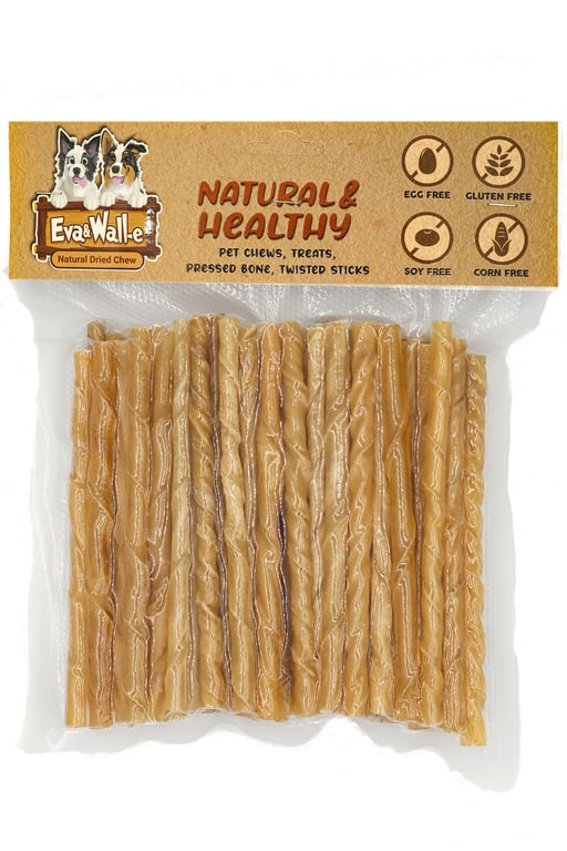 Eva & Walle Doğal Burgu Çubuklar, %100 doğal sığır derisinden üretilmiş, kolajen açısından zengin ve katkı maddesi içermeyen hafif çiğneme ödülleridir. Tüm köpek ırkları için ideal yapıdadır ve kemirme ihtiyacını doğal yollarla karşılar.