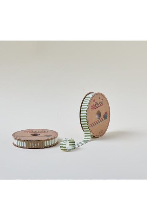 Biye Kalın Çizgili Katlı F12 Yeşil 2 Cm 25 Metre %65 Koton %35 Polyester EF-175819122