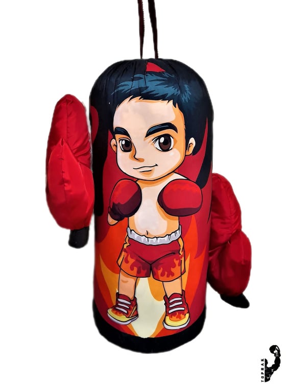 Çocukların çok seveceği, enerjileri atabileceği, gelişimine faydası olan boks torbamız; Boy 45 cm En 18 cm ölçülerinde ve 3 kg civarında ağırlığındadır. Dış yüzeyi darbelere karşı sağlam ve su geçirmeyen polyester kumaştan yapılmıştır. İçi çocukların ellerine zarar vermeyecek ideal ölçüde doldurulmuştur. 2 ile 6 yaş arası çocuklar için uygundur. Bir çift eldiven hediyelidir. Ürün fotoğraflarda ki görseller gibi dolu bir şekilde gönderilecektir.