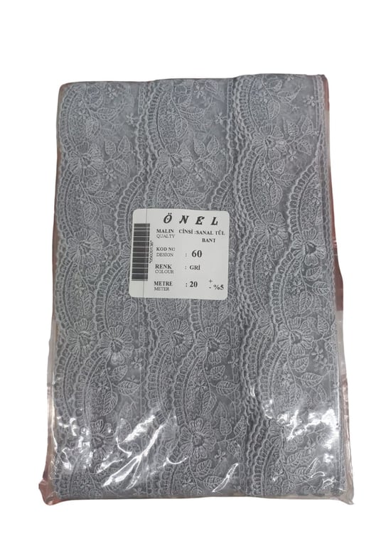 Dantel Polyester Sanal Tül Bant Gri 20 Metre En 6 Cm On-60-g EF-175819517