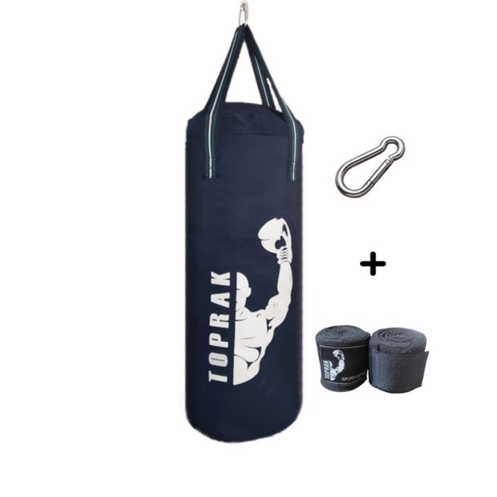 Boks Torbası Eldiven, Karabina ve Bandaj Hediyeli İçi Dolu 60x22cm Lacivert