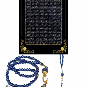 P Parla Namaz Tesbihi Vavlı 99'lu Cam İncili Esma'ul Hüsna Dua Kartı ile Mavi Renk Hediyelik