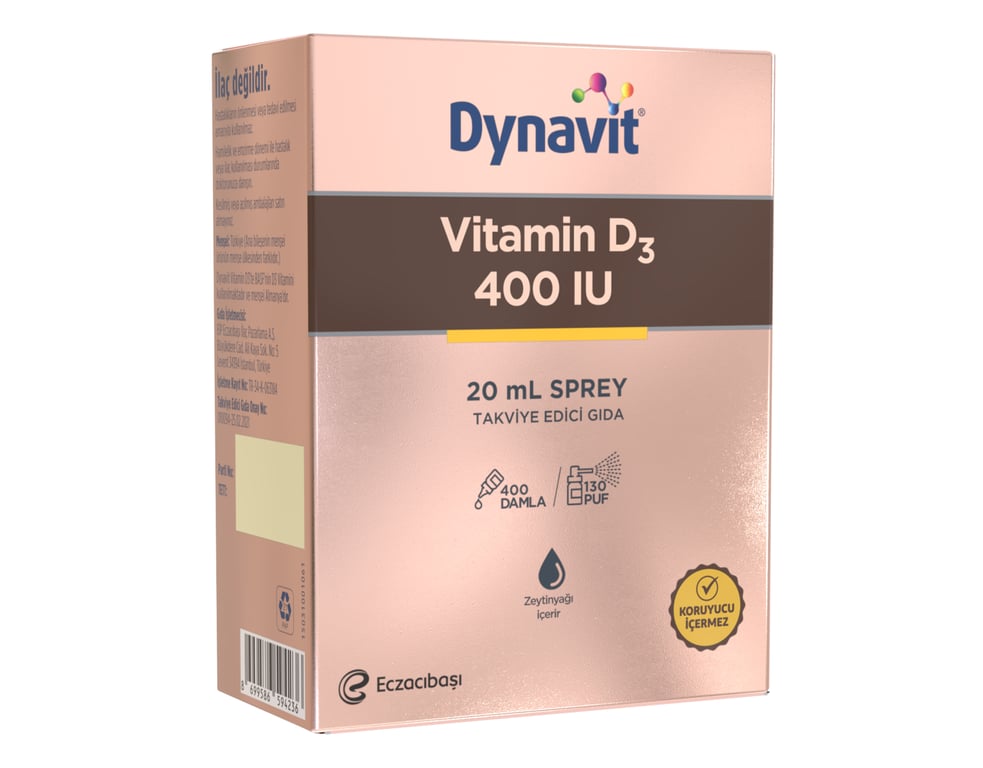 Dynavit D3 400 IU Nedir?: Dynavit D3 400 IU; 10mcg Vitamin D3 içeren sprey takviye edici gýdadýr.