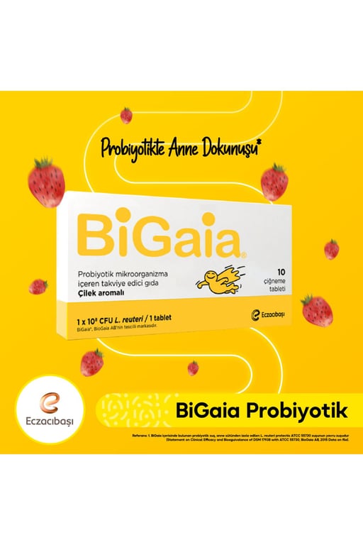 • Bigaia Probiyotik Çilek Aromalı Çiğneme 10 Tablet Lactobacillus reuteri Protectis İçeren Takviye Edici Gıda