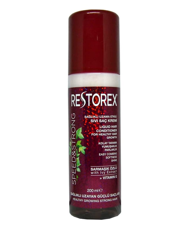 Restorex Sıvı Saç Bakım Kremi E vitamini ve sarmaşık özü içeren formülüyle saçlarınızın parlak ve güçlü kalarak uzamasına yardımcı olur.