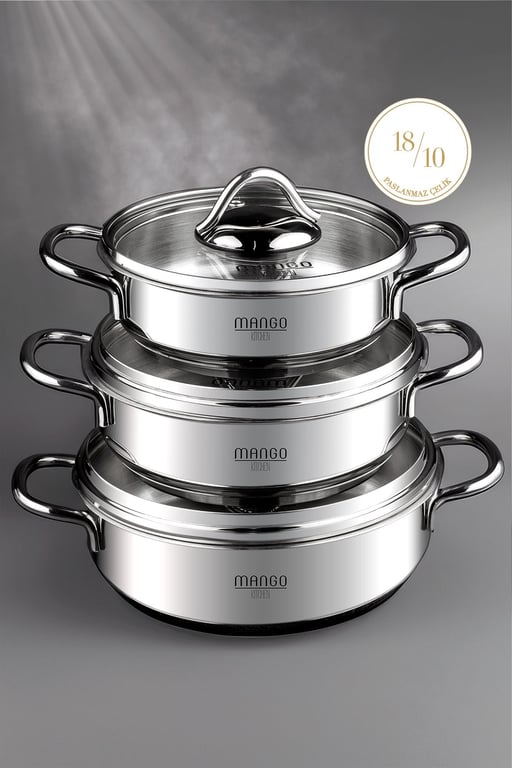Mango Kitchen Artemis - 6 Parça Paslanmaz Çelik Sahan Seti (16-18-20 CM) 18/10 Paslanmaz Çelik