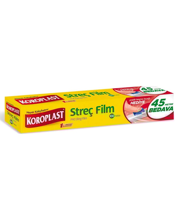 Uzun süre taze tutmak istediğiniz yiyeceklerinizi hava geçirmeden saklamanıza imkan veren Koroplast Streç Film hava geçirmez ve kolay kaplanır, esnek yapısıyla yiyeceklerinizi güvenle saklamanızı sağlar.
