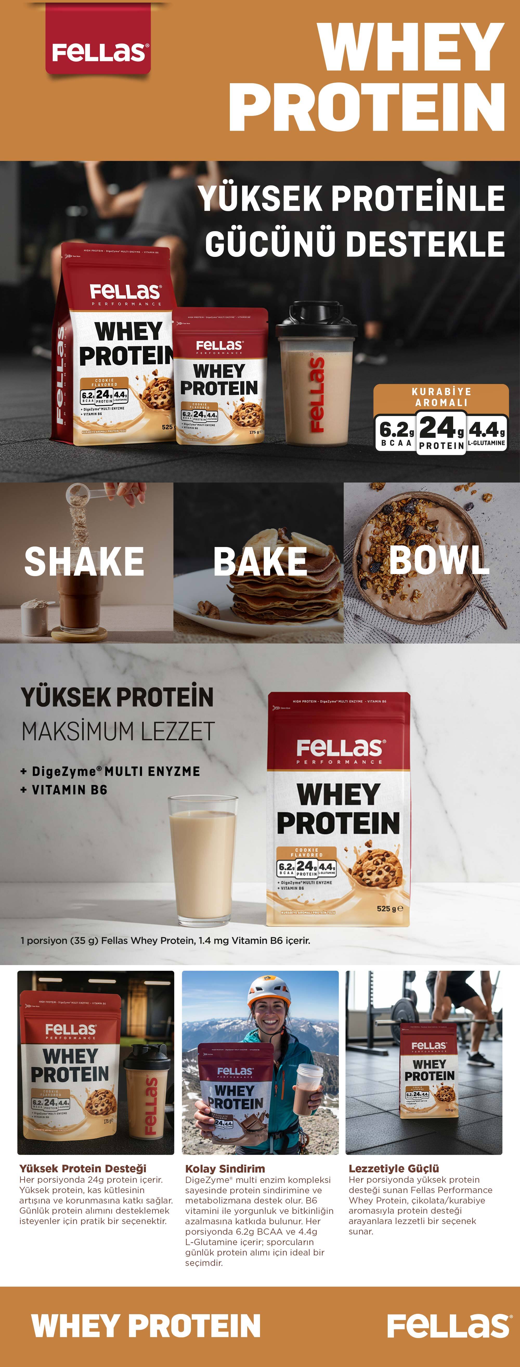 •  Her porsiyonda yüksek protein desteği sunan Fellas Whey Protein, kurabiye aromasıyla protein desteği arayanlara lezzetli bir seçenek sunar.